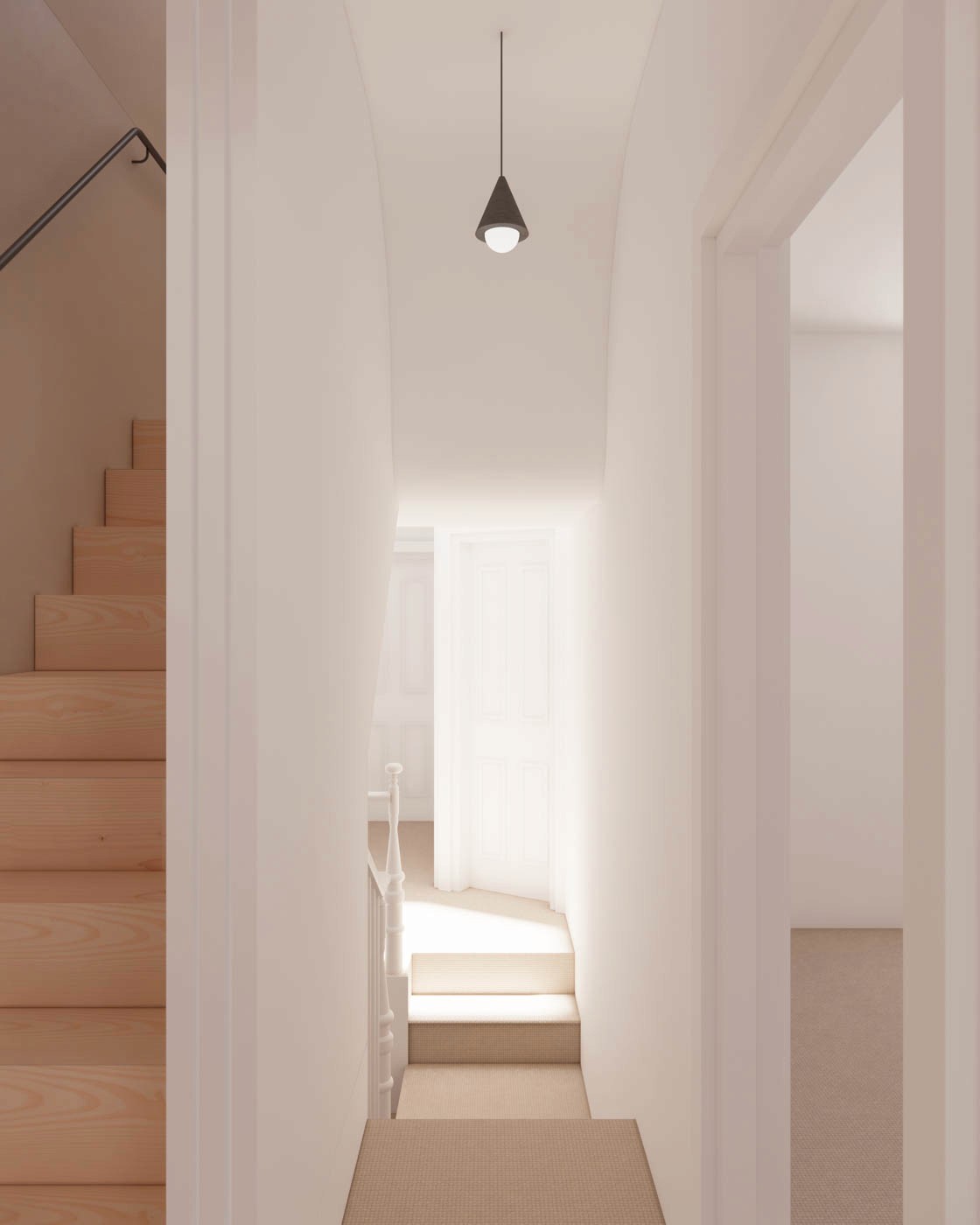 A three-bedroom Victorian terraced house extended with a mansard loft, creating a master suite with carefully considered interiors, abundant natural light, and a contextual yet contemporary feel.